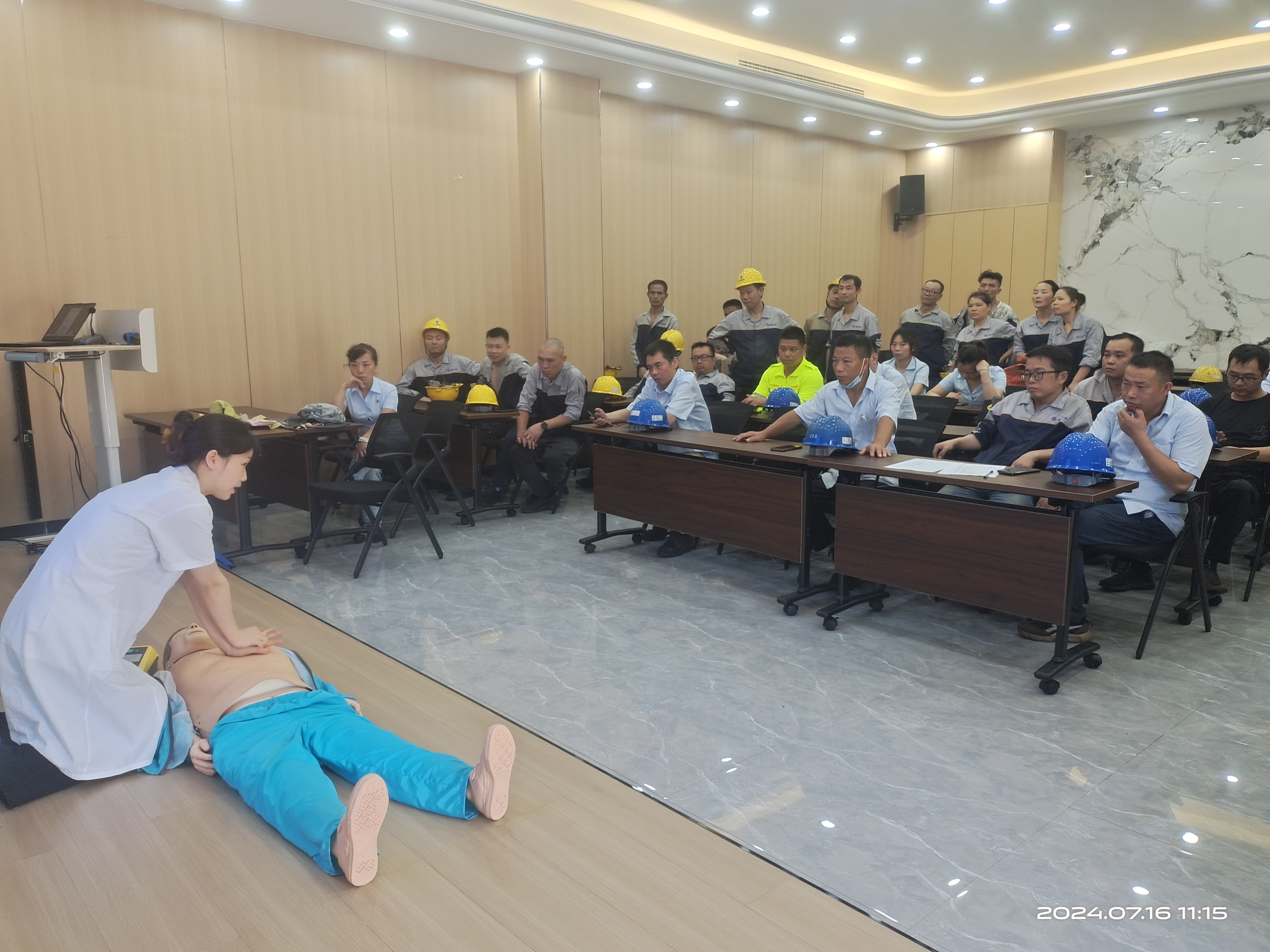 活动分为急救理论知识和实践操作两个环节。现场城郊医院两位医师,生动地向大家展现了急救的基本常识和方法,为员工们详细解读了急救的定义和重要性。他们强调,急救是对遭受意外伤害或突发疾病的伤患,在紧急医疗救护人员未达现场或送至医院治疗前,给予立即的救护。正确的急救措施不仅可以减轻伤患的痛苦,还可能为抢救生命赢得宝贵的时间。